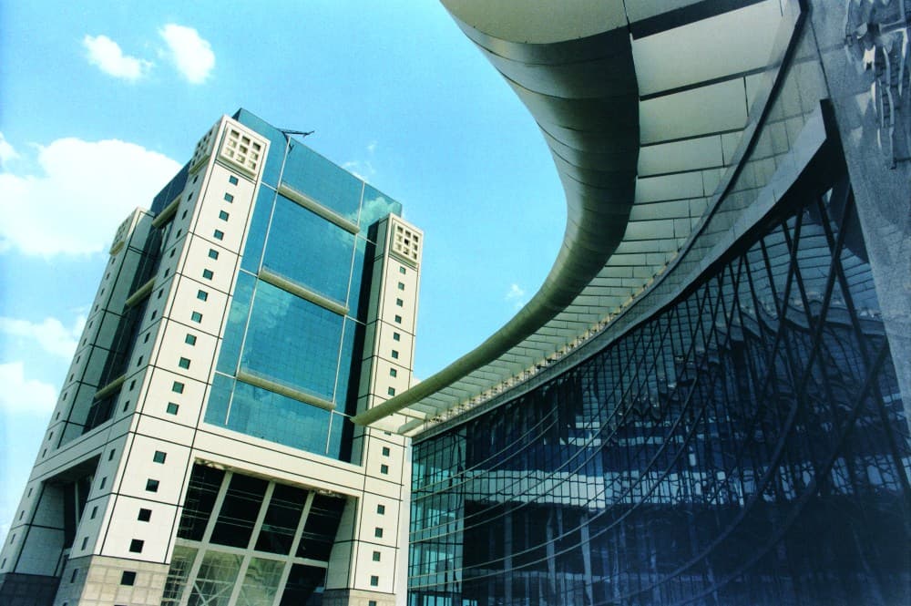A central landscaped square binds the two buildings. A showy fountain is the focal point of the square. In the end, both the buildings complement each other whilst retaining their distinct presence and collectively go on to make a bold statement.